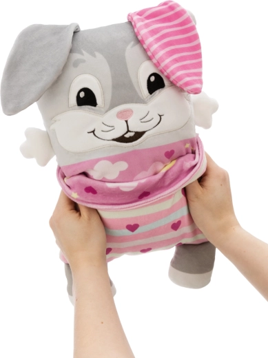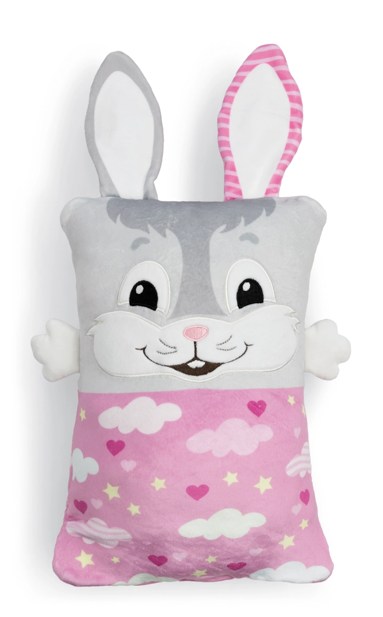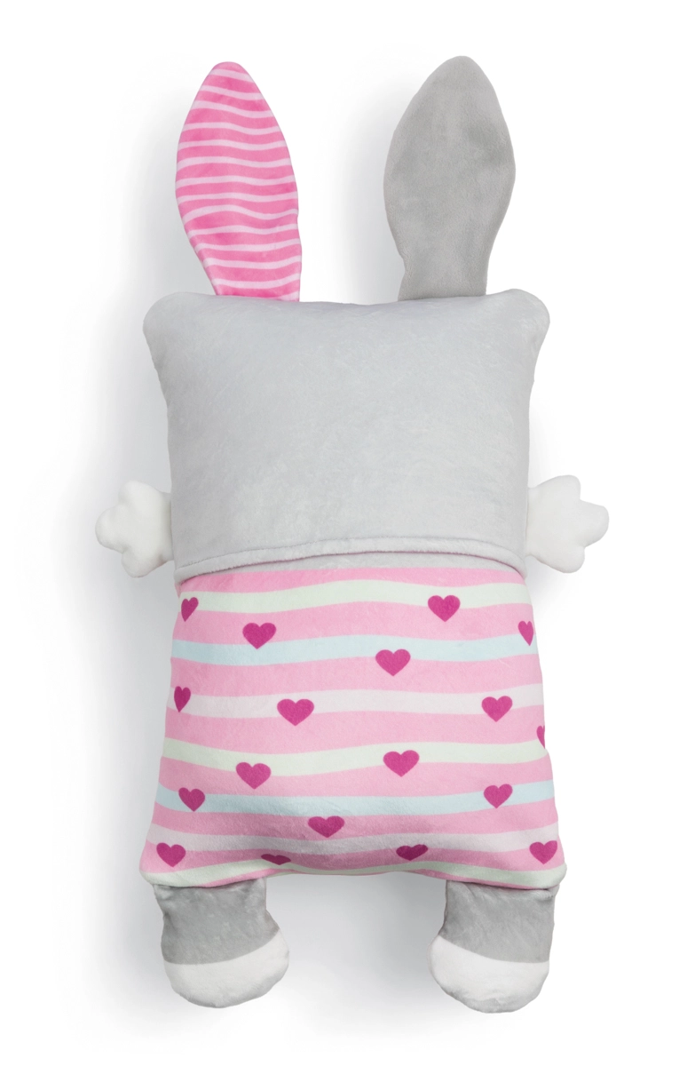 Jedným prevrátením zmení zajačik farby aj výraz – cez deň podnecuje hru a večer upokojuje k spánku.