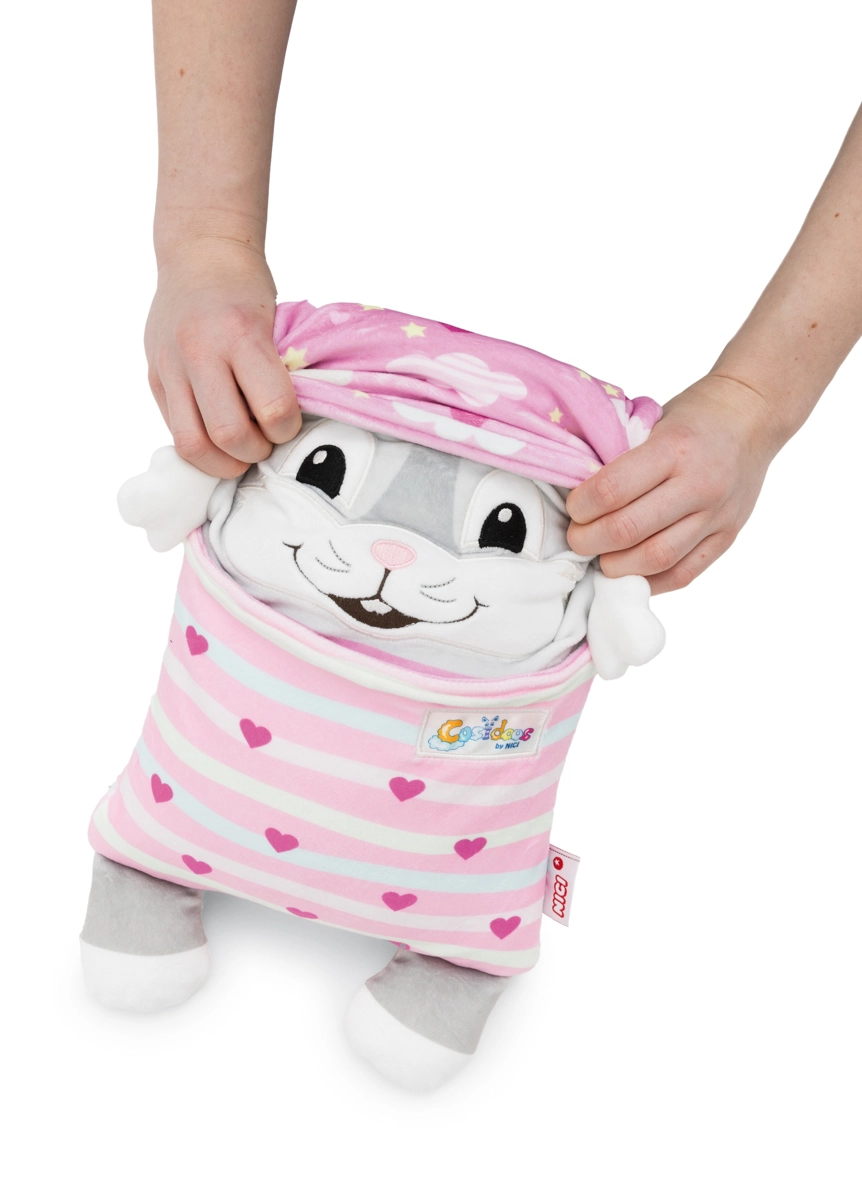 NICI Cosidoos je viac než len hračka – je to verný spoločník na hru aj zaspávanie. Jediným jednoduchým prevrátením zmení vzhľad z denného na nočný motív a pomôže deťom plynulo prejsť od aktívnej hry k odpočinku. Hebký, kvalitný plyš je príjemný na dotyk a bezpečné vyšívané detaily sú ideálne aj pre menšie deti.
