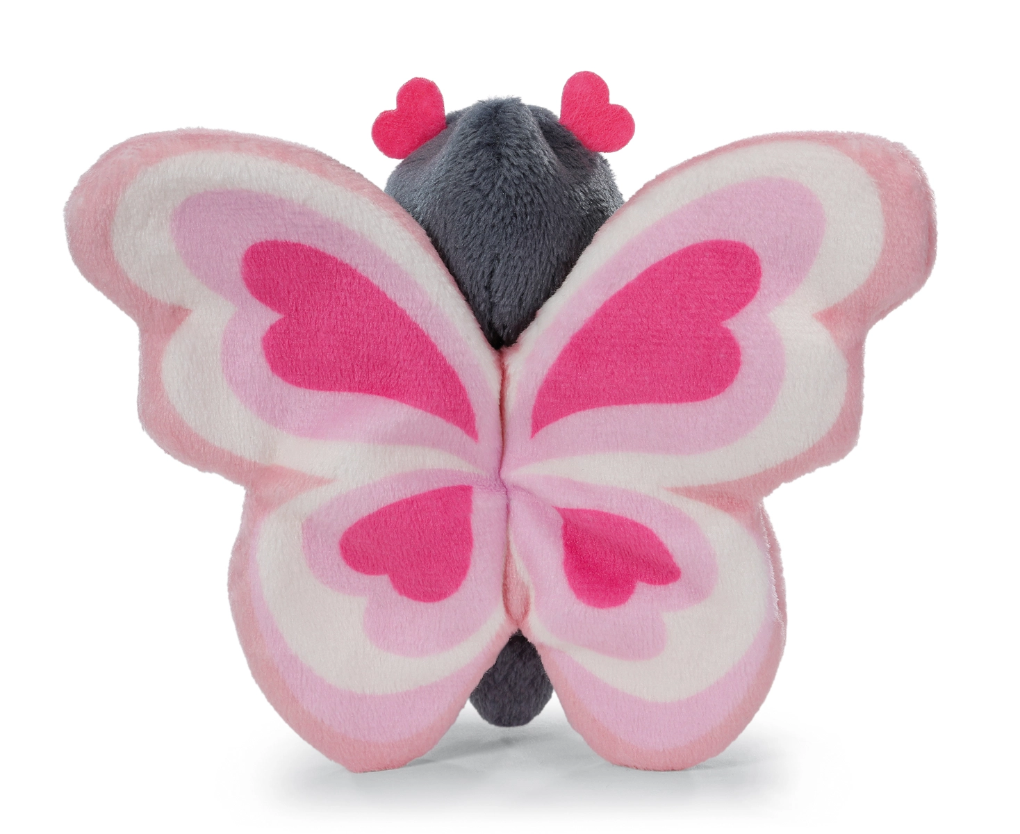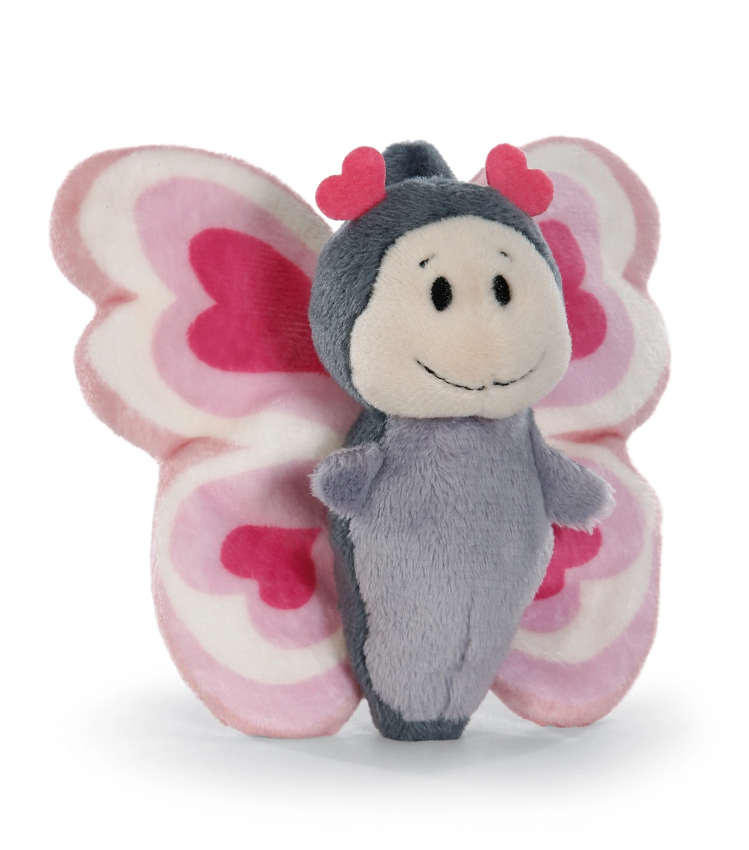 Plyšový motýlik NICI Love z kolekcie Love Classic poteší malých aj veľkých. Kombinuje hebký sivo-fialový kožúšok, srdiečkové tykadlá a výrazné ružovo-biele krídla s motívom sŕdc. Vďaka vyšívaným očiam a detailom je vhodný aj pre najmenšie deti od narodenia.