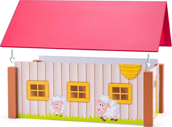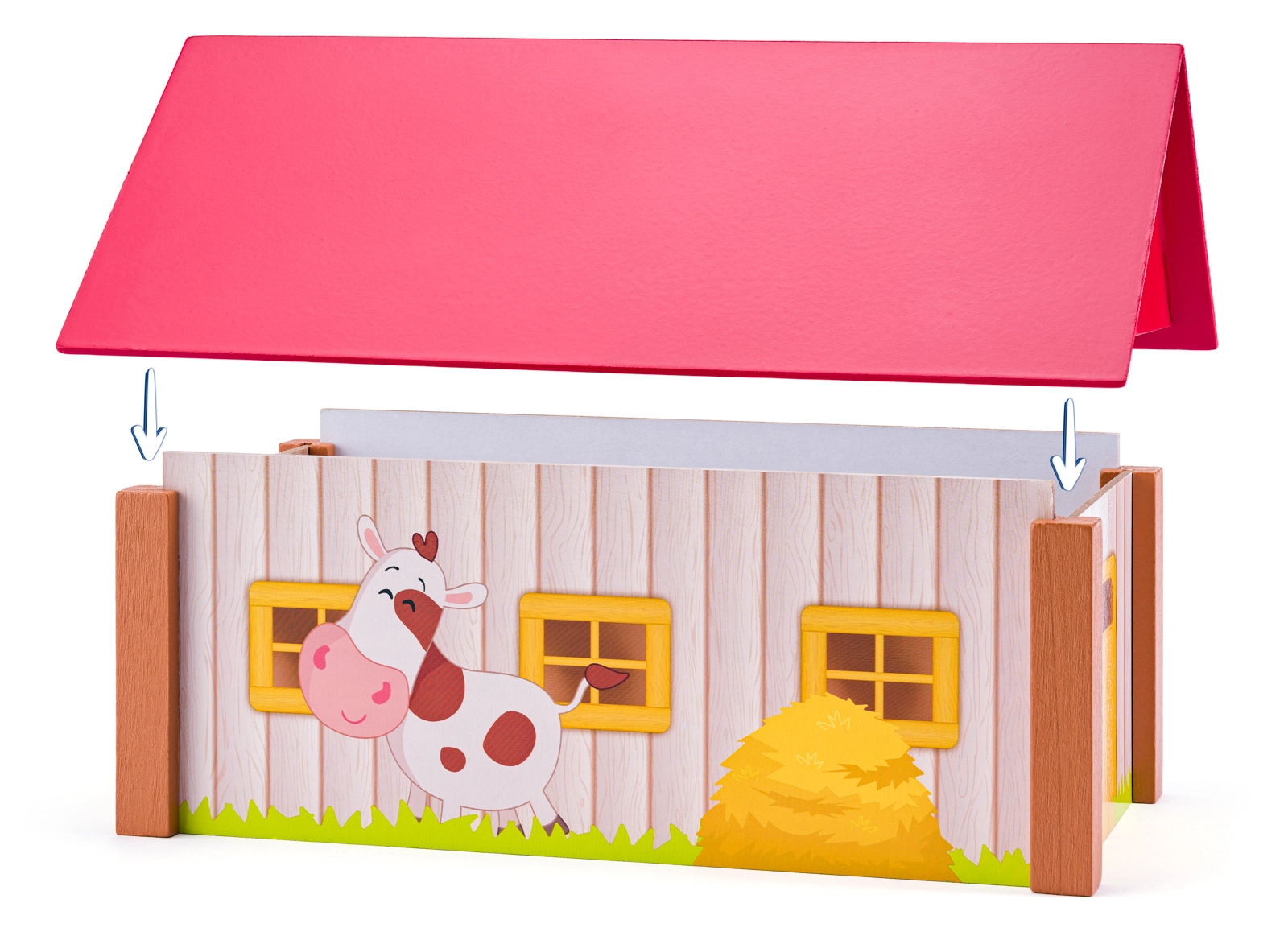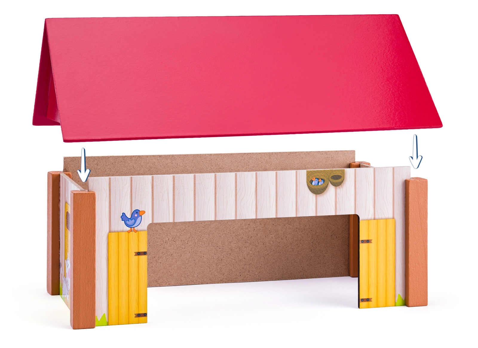 Tento krásny drevený statok prináša deťom svet zvieratiek a vidieckeho života priamo do ich izbičky. Tri samostatné budovy s odnímateľnými strechami umožňujú ľahký prístup dovnútra a rozmanité herné scenáre. Dvojdielna hracia podložka s cestami, jazierkom a motívmi prírody vytvára realistické prostredie pre figúrky a vozidlá.
