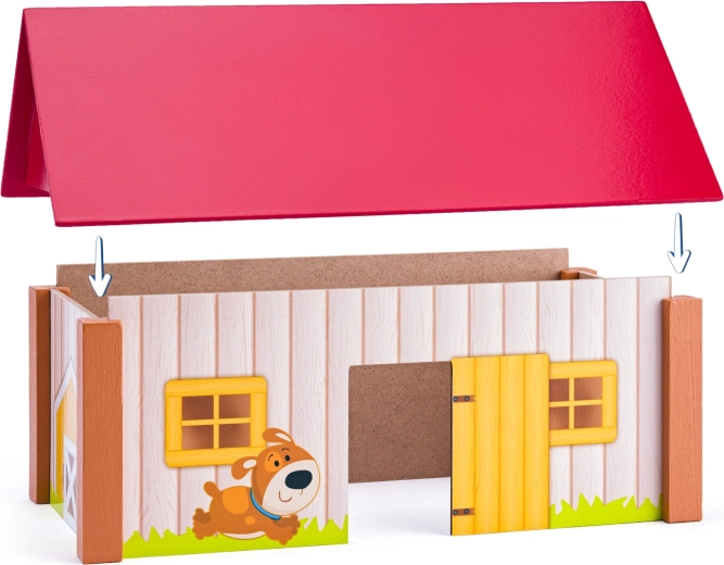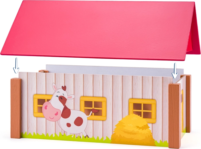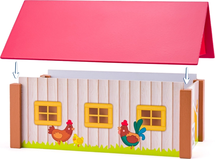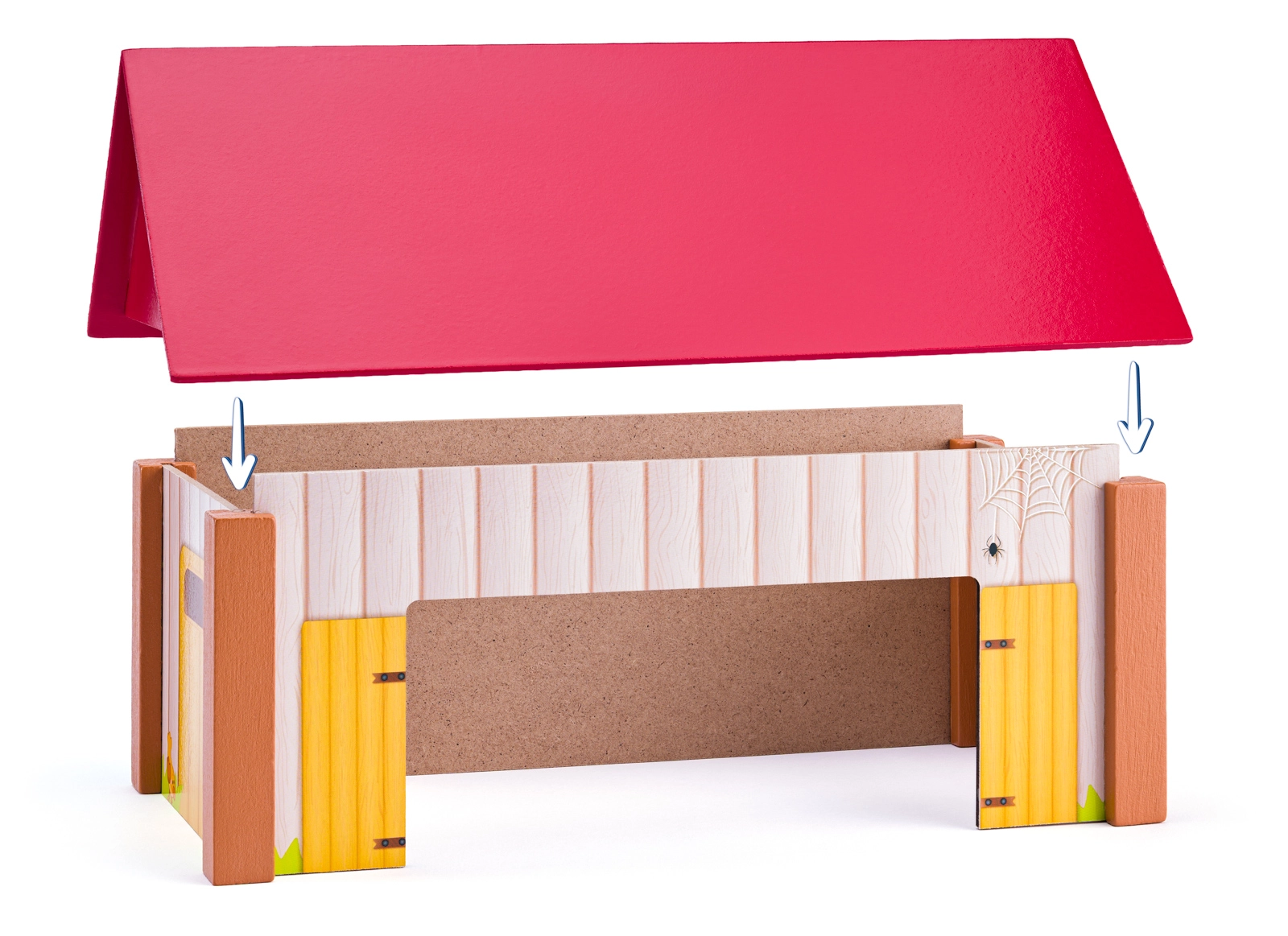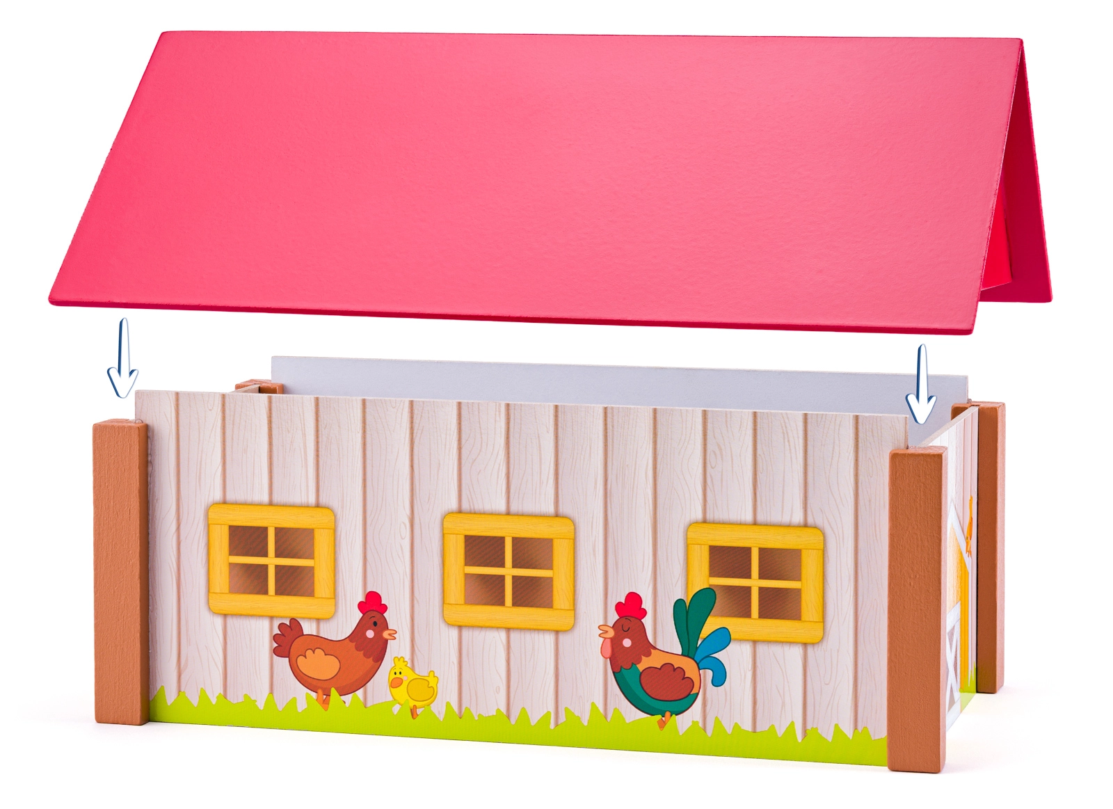 Tento krásny drevený statok prináša deťom svet zvieratiek a vidieckeho života priamo do ich izbičky. Tri samostatné budovy s odnímateľnými strechami umožňujú ľahký prístup dovnútra a rozmanité herné scenáre. Dvojdielna hracia podložka s cestami, jazierkom a motívmi prírody vytvára realistické prostredie pre figúrky a vozidlá.
