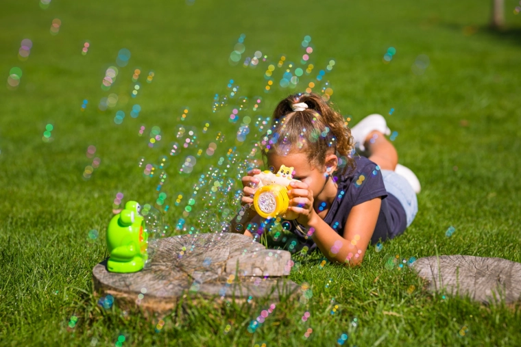 Ľahký a prenosný dizajn si deti vezmú na záhradu, do parku aj na narodeninové oslavy. Farebné bubliny vykúzlia úsmev kdekoľvek.