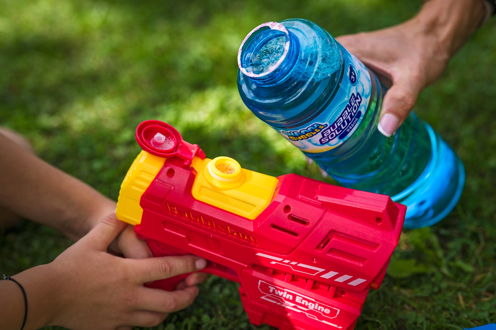 Skvele doplní bublinkové pištole a ďalšie hračky na bubliny – rýchle a čisté dolievanie bez zbytočného plytvania.