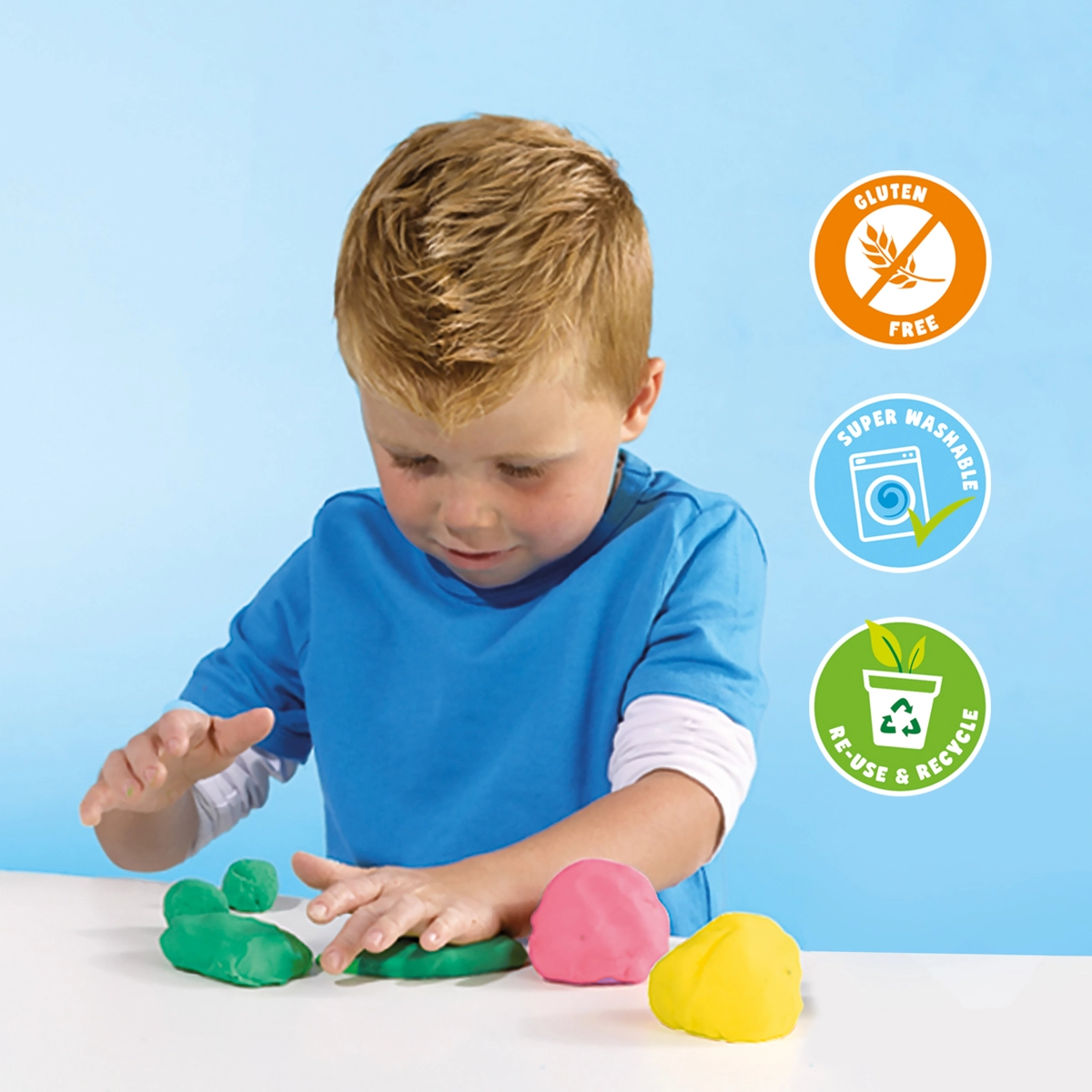 Zábavná a bezpečná sada pre malých tvorcov: ECO plastelína s kvalitnými drevenými nástrojmi. Obsahuje tri farby plastelíny a bohaté príslušenstvo pre nekonečné tvorenie. Vyšší podiel prírodných surovín, recyklovaný plast pri obaloch a bezlepkové zloženie poteší rodičov aj deti.