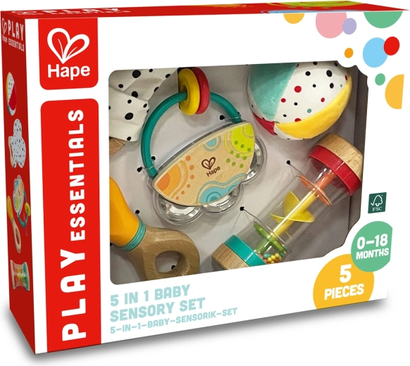 Senzorická sada hračiek 5 v 1 HAPE je navrhnutá tak, aby rozvíjala zrakové, sluchové aj hmatové vnímanie detí a prirodzene podporovala ich koordináciu oko–ruka. Vďaka kombinácii dreva, textilu a bezpečných plastov je hranie pestré a podnetné, zatiaľ čo ľahké tvary sa ľahko držia aj najmenším rúčkam.