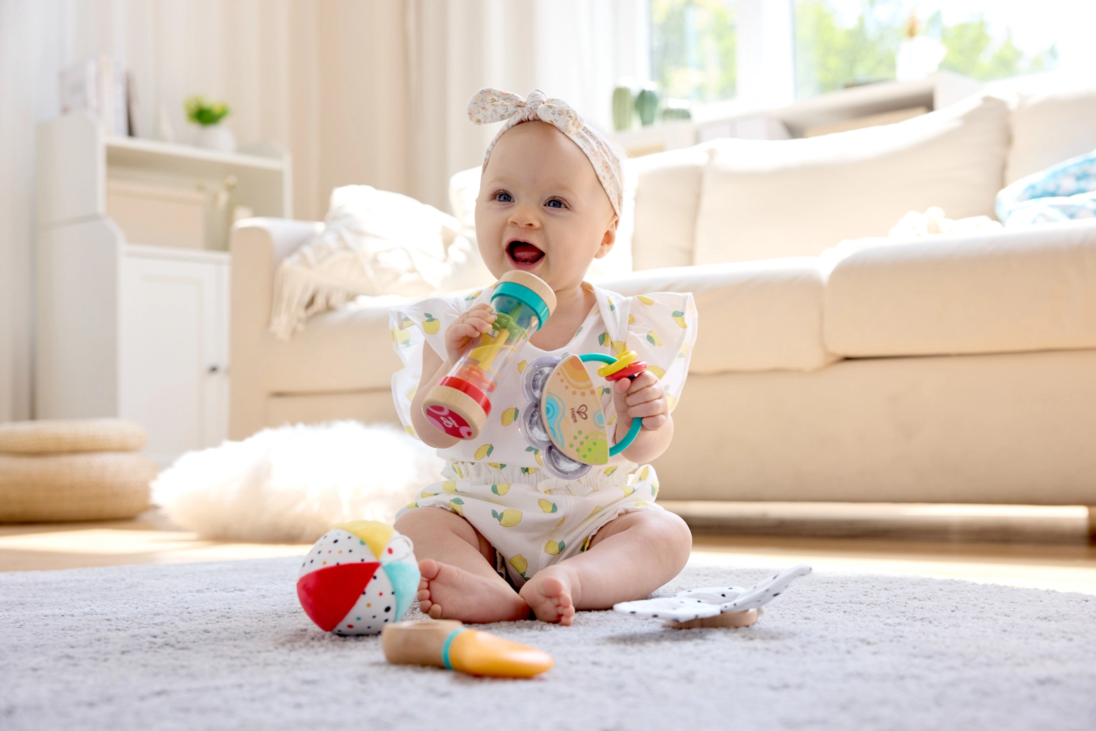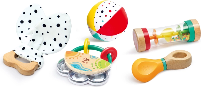 Objavte univerzálnu sadu pre najmenších, ktorá podporuje raný vývin vďaka žiarivým farbám, rozmanitým textúram a pútavým zvukom. Táto 5v1 sada HAPE kombinuje tamburínu, hrkálky, mäkkú loptičku, hryzátko a dažďový valec pre komplexnú senzorickú stimuláciu, tréning úchopu a jemnej motoriky už od narodenia.