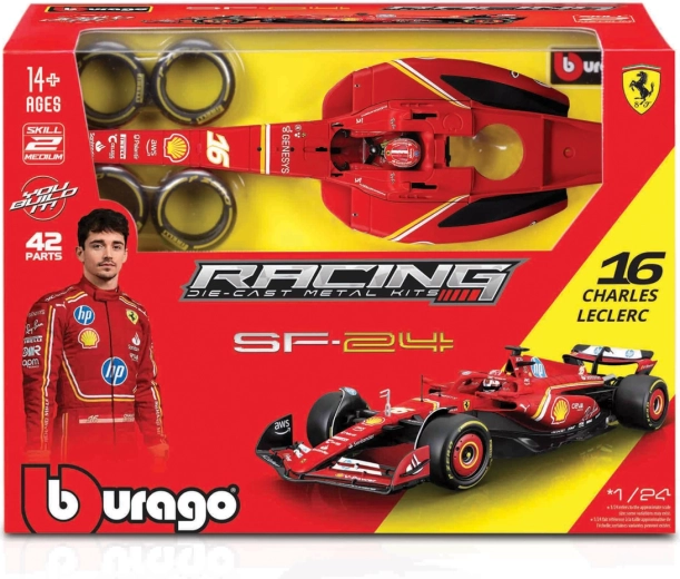 Objavte realistický model z kolekcie RACING MODEL KIT a užite si radosť z vlastnoručného zostavenia. Tento detailne spracovaný voz FERRARI SF-24 v mierke 1:24 verne zachytáva pretekársky dizajn sezóny 2024 vrátane štartovného čísla 16. Diely do seba presne zapadajú, takže na stavbu nepotrebujete lepidlo ani farby.