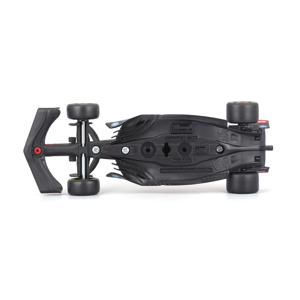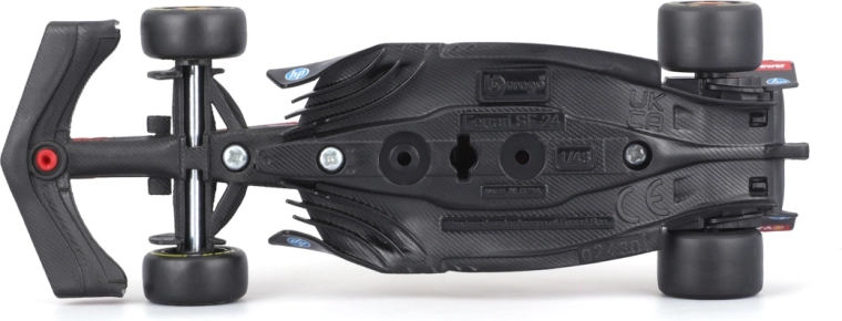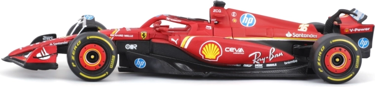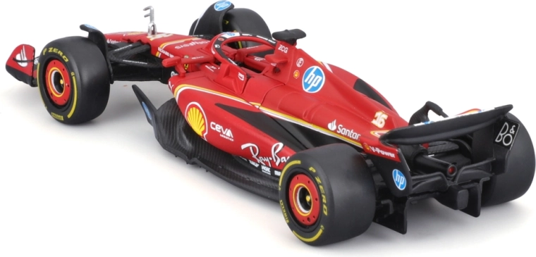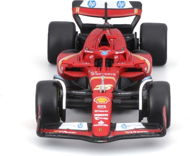 Verne spracované sponzorské decaly, aerodynamické krídla, halo a slick pneumatiky presne zodpovedajú Ferrari SF-24 sezóny 2024.
