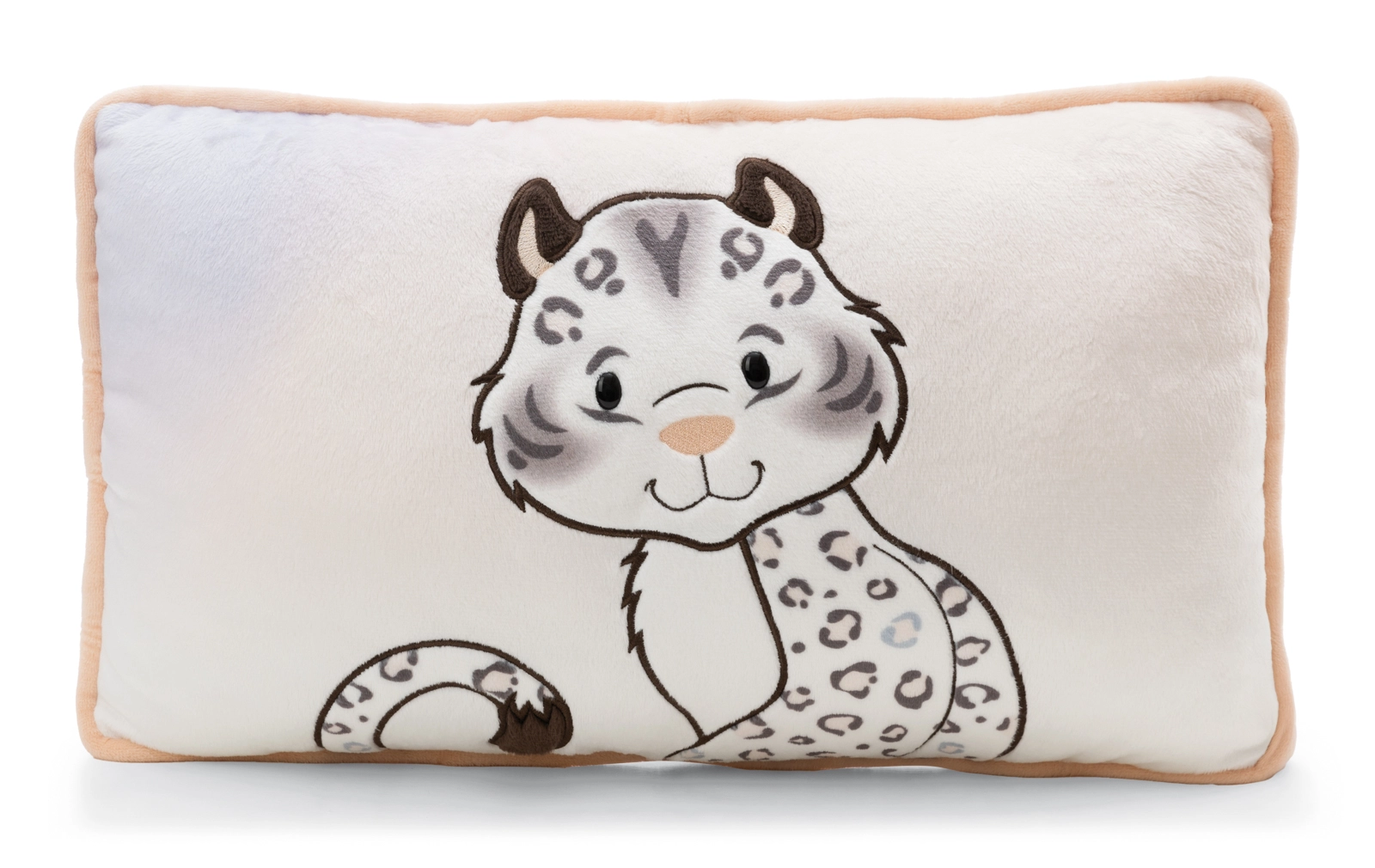 Obdĺžnikový plyšový vankúš NICI GREEN prináša do interiéru čaro zimnej divočiny. Prednú stranu zdobí kvalitná plyšová aplikácia snežného leoparda Eleni Snowbell, zadnú stranu zas elegantný leopardí vzor. Mäkká, nadýchaná výplň a hebký povrch pozývajú k relaxu, mojkaniu aj krátkemu odpočinku.