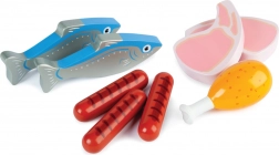Čerstvá donáška mäsa a rýb v drevenom boxe s rukoväťami. Skvelá hračka na hru na predavačov alebo kuchárov, set obsahuje 2 ryby, 2 kotlety, 3 klobásy a 1 kuracie stehno. Skvelý spôsob, ako deti naučiť o dôležitosti zdravej a vyváženej stravy, tiež o tom, odkiaľ jedlo pochádza a ako ho pripraviť. Každý z dielikov je zaoblený a ideálny pre malé detské ruky. Podporuje kreatívnu a predstavivú hru. Vyrobené z kvalitných materiálov z odpovedných zdrojov. Zodpovedá európskej bezpečnostnej norme. Hlavné vlastnosti: ideálny tvar pre malé detské ruky, podporuje kreativitu a predstavivosť
