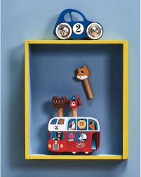 Modré autíčko Vilac je vyrobené z lakovaného dreva, čo zaisťuje jeho trvanlivosť a zároveň elegantný vzhľad. Má kovové pogumované kolesá, ktoré zabezpečujú hladkú a tichú jazdu. Vďaka svojmu špeciálnemu riešeniu nápravy je autíčko schopné zatáčať doprava a doľava, čo dodáva hre na dynamike.
