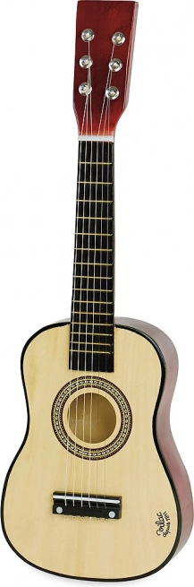 Táto štýlová detská gitara v prírodnom drevenom dizajne je skvelou voľbou pre malých začiatočníkov. Vďaka nylonovým strunám je príjemná na dotyk a šetrná k detským prstom, čo podporuje radosť z hry a prvé hudobné experimenty.