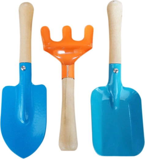 Praktická detská sada záhradného náradia obsahujúca hrabličky, lopatku a rýľ. Ideálna pre prvé krôčiky malých záhradníkov, rozvíja jemnú motoriku a vzťah k prírode.