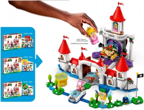 Vstúpte do kráľovstva PRINCESS PEACH s bohato prepracovaným modelom zámku, ktorý rozšíri vaše kurzy LEGO Super Mario. Čaká na vás trónna sieň s otáčavou stenou, za ktorou sa skrýva Bowser, vitráž s Peach, tajný obraz s akčnou značkou aj torta s Goombom. Nechýba špeciálna hradná rúra, časový blok, lávový most a miska s fialovým ovocím.