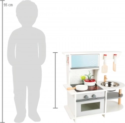 Vďaka robustnej konštrukcii z dreva a kovu je táto kuchynka odolná a poskytuje radu interaktívnych zážitkov. Dodáva sa s obrázkovým návodom na montáž a základnou sadou príslušenstva.