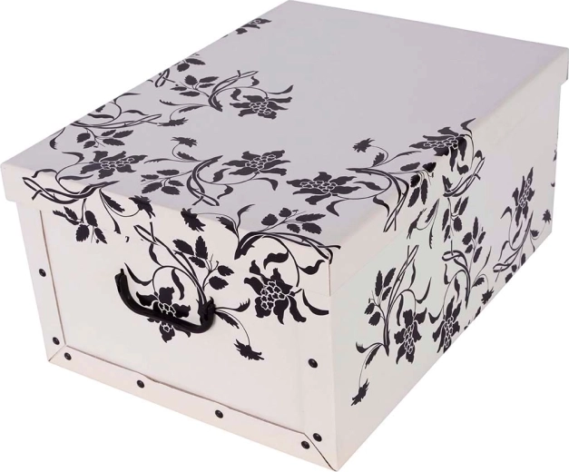 Objavte praktické a krásne riešenie na ukladanie vecí. Úložné boxy MISS SPACE s motívom barokových kvetov v bielej farbe vynikajú pevnou konštrukciou z kašírovaného kartónu a premyslenými detailmi, ako sú integrované úchyty na jednoduché prenášanie. Talianska výroba zaručuje kvalitné spracovanie a dlhú životnosť.