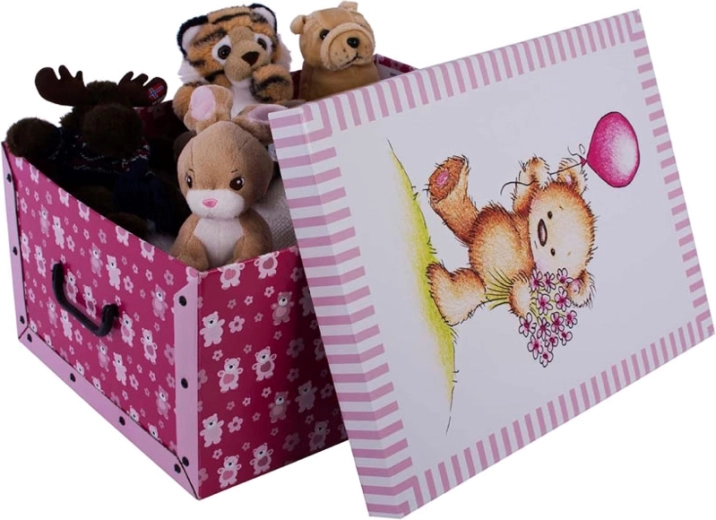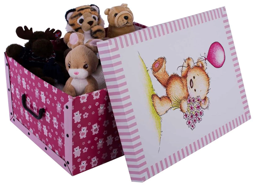 Táto úložná krabica MAXI kombinuje funkčnosť a atraktívny dizajn. Vzor ružových medvedíkov zútulní každý interiér, zatiaľ čo pevná konštrukcia zaistí dlhú životnosť. Vďaka praktickým úchytom sa s krabicou ľahko manipuluje a zložíte ju behom chvíľky bez použitia nástrojov.