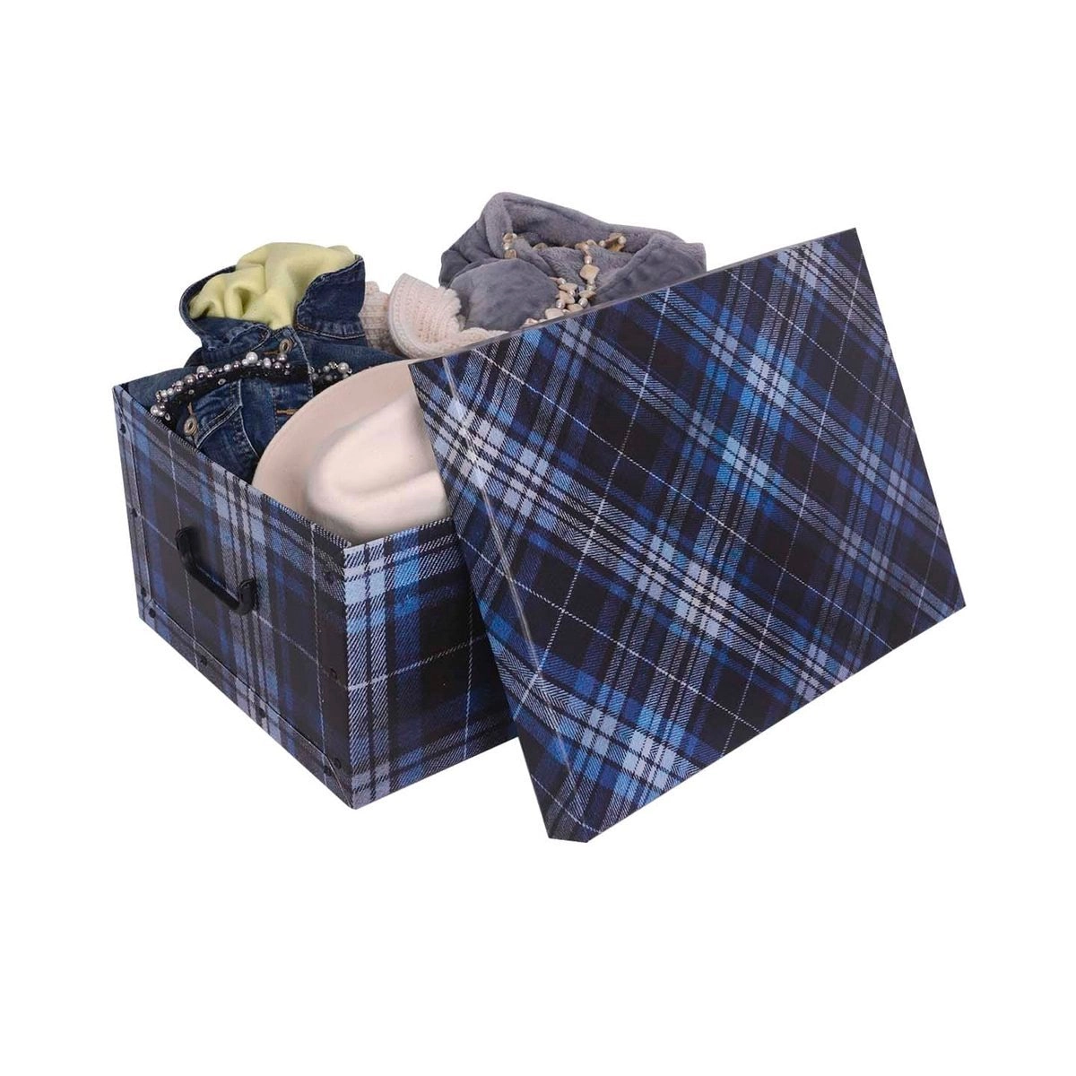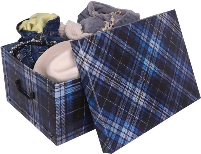 Elegantný kartónový úložný box MAXI v dezéne modrej škótskej kocky ponúka štýlovú organizáciu domova aj kancelárie. Je vyrobený zo 100 % recyklovaného kartónu, jednoducho sa skladá bez náradia a vďaka talianskej výrobe vyniká kvalitou. Certifikácie FSC a PEFC, absencia ťažkých kovov a škodlivín a praktické úchyty z neho robia spoľahlivú a ekologickú voľbu.