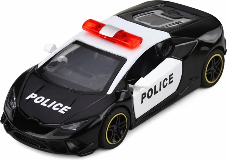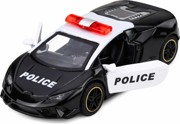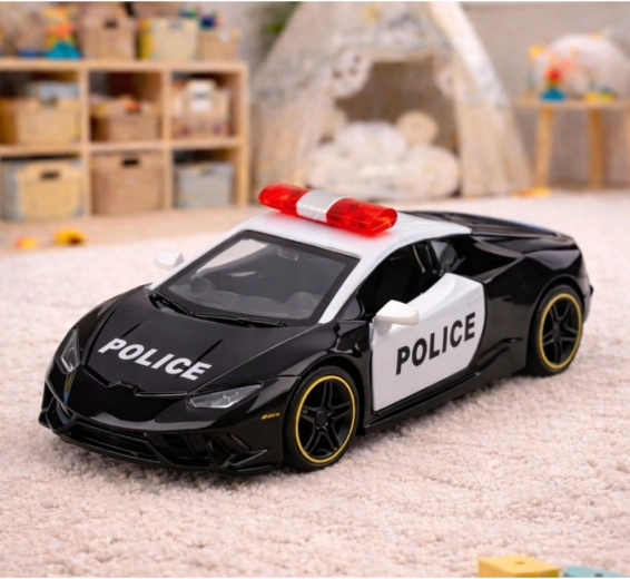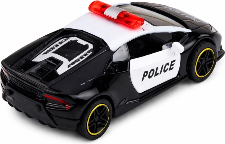 Štýlové policajné športové auto v mierke 1:43 poteší malých aj veľkých fanúšikov rýchlych vozidiel. Vďaka kovovej karosérii, naťahovaciemu pohonu pull-back a otváracím dverám ponúka realistickú hru bez batérií. Kompaktné rozmery a odolné spracovanie zaručujú dlhú zábavu aj ako dekoratívny kúsok do zbierky.