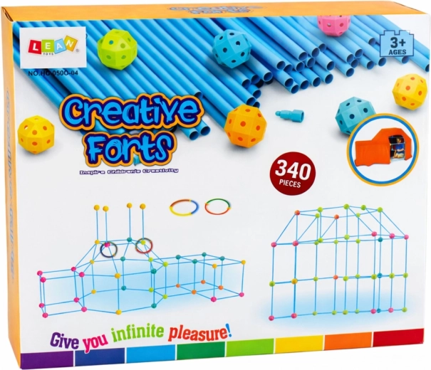 Objavte nekonečné možnosti tvorenia so stavebnicou z trubiek a spojok o 340 dieloch. Ľahká plastová konštrukcia, jednoduché zacvaknutie a pevné spojenie umožnia deťom stavať domčeky, pevnosti, tunely aj kupoly. Kratšie diely sú ohybné pre oblúky, dlhšie trubky zaistia stabilné konštrukcie. Súčasťou je aj veľká prikrývka na premenu rámu na útulný bunker.