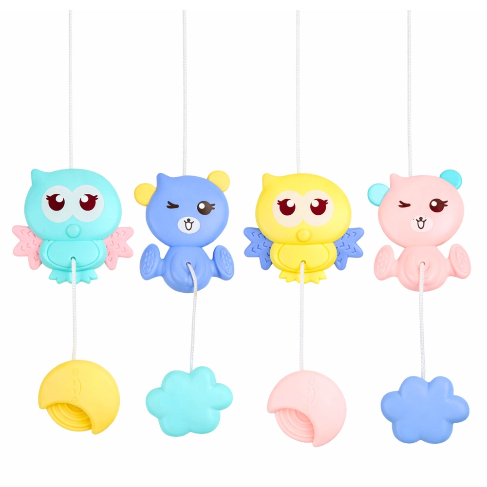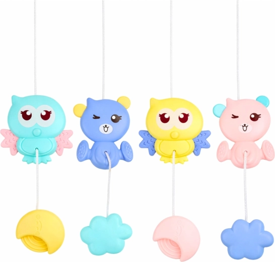 Farebné závesné hračky v tvare zvieratiek priťahujú pozornosť, rozvíjajú koordináciu oko–ruka, jemnú motoriku a posilňujú svaly. Mäkké, netoxické bočné prvky môžu poslúžiť ako hryzátko. Univerzálny úchyt zaručí ľahkú inštaláciu na väčšinu postieľok s priečkami; po odňatí možno hračky použiť aj v kočíku.