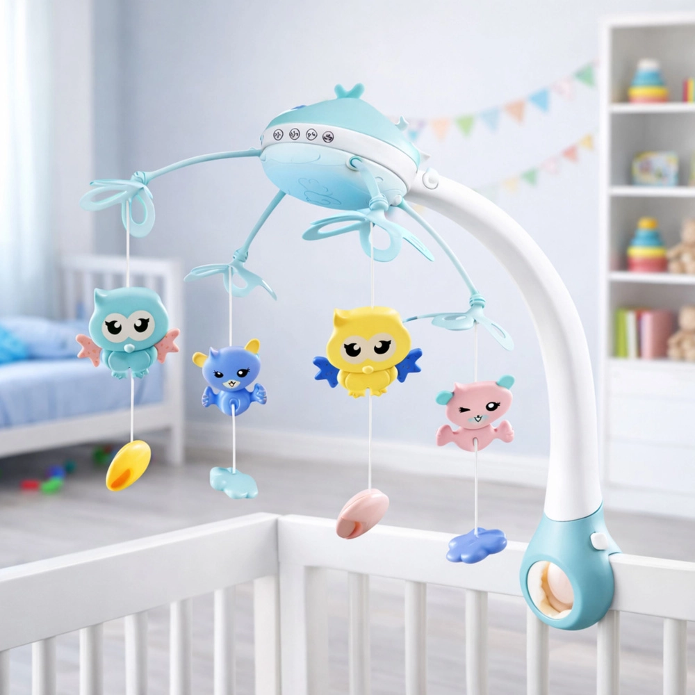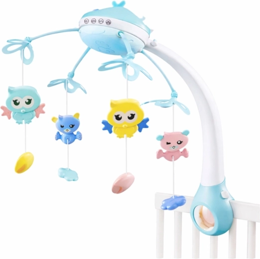 Interaktívny kolotoč nad postieľku je ideálny už od prvých dní života. Premieta na strop upokojujúce hviezdy a mesiac, prehráva ukolísanky, zvuky zvierat, nástrojov aj prírody a jemne sa otáča. Diaľkový ovládač umožní všetko nastaviť bez rušenia spánku dieťaťa, vrátane regulácie hlasitosti a vypnutia rotácie.
