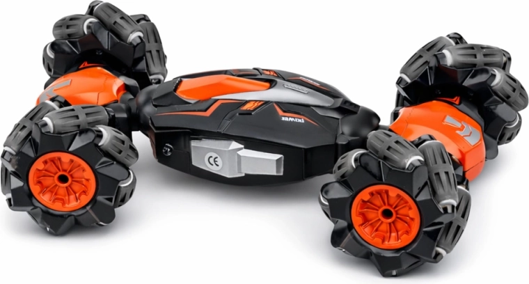 Mecanum‑štýl kolesá s valčekmi umožnia jazdu vpred, vzad, do strán aj uhlopriečne. Ľahko predvedie drifty a rýchle manévre na rôznych povrchoch.