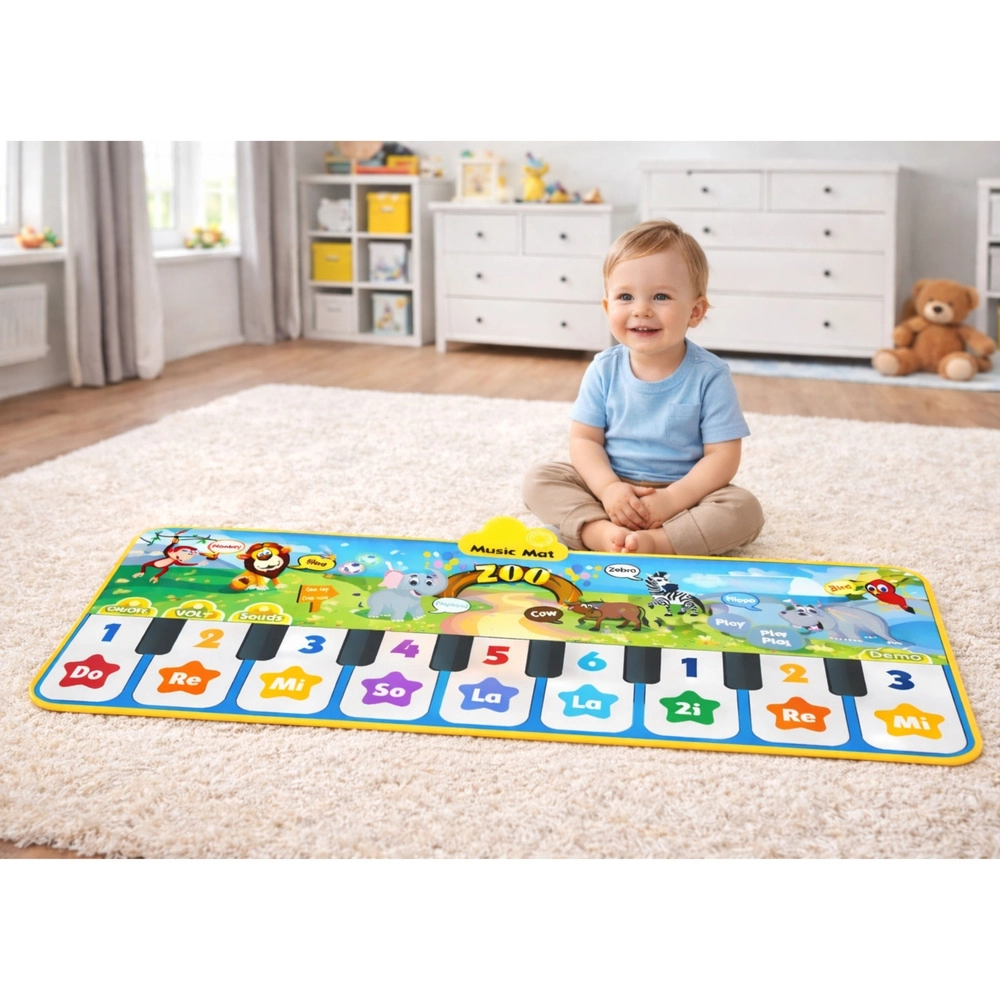Hudobná podložka s motívom zoo premení každý krok alebo dotyk na tón, melódiu či zvuk zvieraťa. Veľké, farebné klávesy s označením Do–Re–Mi a číslami povzbudzujú deti k objavovaniu hudby formou hry, zatiaľ čo ich priateľské ilustrácie leva, zebry či hrocha udržia pozornosť.