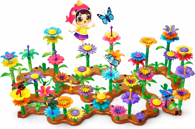 Táto pestrá stavebnica prináša deťom nekonečný priestor pre fantáziu. Nájdú v nej stonky, listy, kvetné hlavičky, tyčinky aj dekoratívne motýliky a prvky cestičiek, vďaka ktorým ľahko postavia farebné záhonky, vence aj originálne 3D aranžmány. Každý výtvor môže byť iný, takže sa zábava len tak neomrzí.