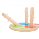 Podporte detskú kreativitu s touto farebnou drevenou hračkou, ktorá kombinuje učenie tvarov a farieb s rozvojom jemnej motoriky.