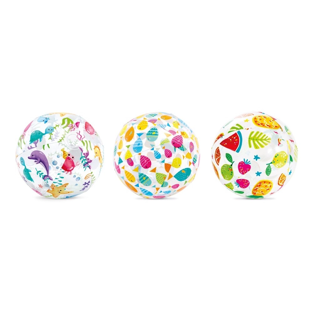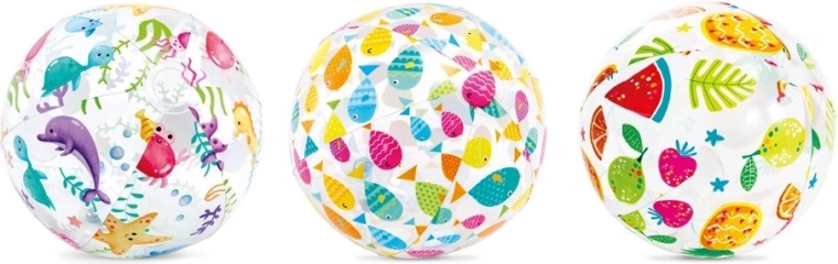 Transparentné panely s farebnou ovocnou potlačou (melón, jahody, ananás a i.) prinášajú hravú atmosféru na pláž aj k bazénu a zvyšujú viditeľnosť lopty vo vode.