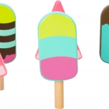 Deti si vyberú z 12 lákavých „príchutí“ – 6 kopčekových zmrzlín do kornúta a 6 farebných nanukov. Kornúty s kolíkom umožňujú kopčeky jednoducho nasadzovať a kombinovať, čo podporuje predstavivosť a učenie formou hry. Stánok možno ľahko využiť aj ako mobilný trhový stánok na predaj „iných výrobkov“ z detského sortimentu.