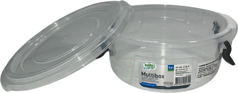 Tento okrúhly plastový box s objemom 600 ml je skvelým pomocníkom na skladovanie hotových jedál, desiat aj zvyškov. Vďaka priehľadným stenám vždy vidíte, čo je vo vnútri, a tesné veko udrží potraviny dlhšie čerstvé. Využijete ho doma v kuchyni, v chladničke aj mrazničke, ale aj na cestách.