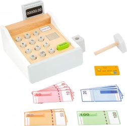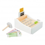 Štýlová drevená pokladňa v bielej farbe podporuje hraní rolí, rozvíja základy matematiky a učí deti manipulácii s peniazmi. Súčasťou je skener, čítačka kariet, hracie bankovky a drevená kreditná karta – všetko prehľadne uložené v zásuvke. Ideálny doplnok do každého detského obchodu.