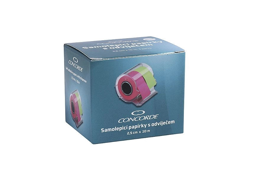 Praktické samolepiace papieriky v rolkách s odvíjačom v dvoch neónových farbách (ružová a zelená) na rýchle poznámky a označovanie. Každá rola má šírku 2,5 cm a dĺžku 10 m, zadná strana je plne lepiaca po celej šírke. Vďaka integrovanému nožíku si ľahko odtrhnete presne tak dlhý lístoček, ako potrebujete. Skvele držia na papieri aj hladkých povrchoch.