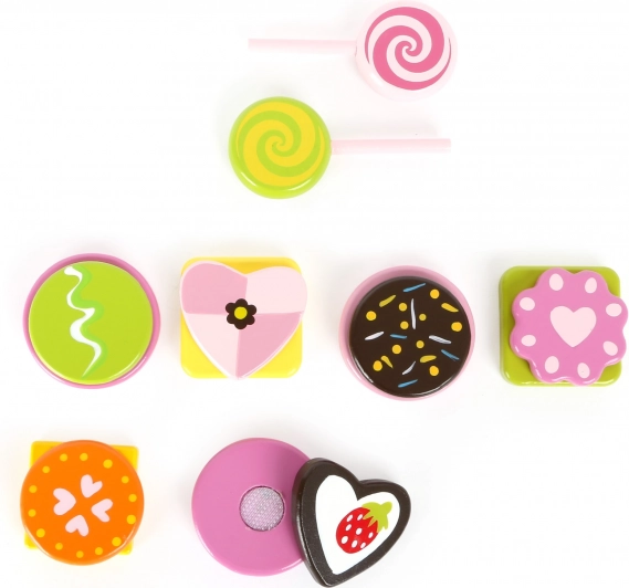 Objavte čaro sladkého hrania s pestrou sadou drevených pochúťok SMALL FOOT. Lízanky, sušienky a pralinky sú vyrobené zo 100% certifikovaného FSC dreva a vďaka pevným suchým zipsom ich deti môžu znova a znova rozdeľovať a spájať. Realistické doplnky premenia každú detskú kuchynku na kreatívnu cukráreň.