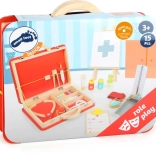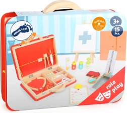 Kufrík má pružné pásiky a oddelené priehradky, ktoré udržia všetko príslušenstvo na mieste. Ilustrácie s lekárskymi symbolmi uľahčujú orientáciu a robia hru zrozumiteľnou aj pre menšie deti. Hra rozvíja jemnú motoriku, komunikáciu aj rozprávačské schopnosti.