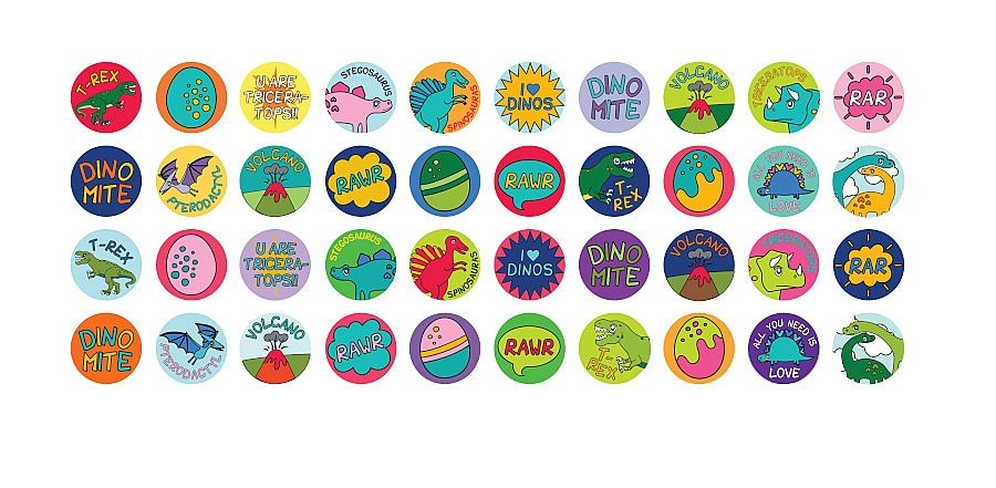 - 320 samolepiek v žiarivých farbách a hravých motívoch dinosaurov.