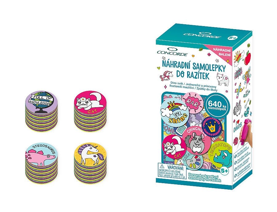 Objavte radosť z tvorenia s farebnými samolepkami CONCORDE, ktoré potešia deti aj dospelých. Balenie ponúka širokú škálu motívov – od roztomilých miláčikov cez jednorožce a princezné až po dinosvet a späť do školy. Samolepky skvele držia na hladkých povrchoch a dajú sa opakovane použiť, takže inšpirácia nikdy nekončí.