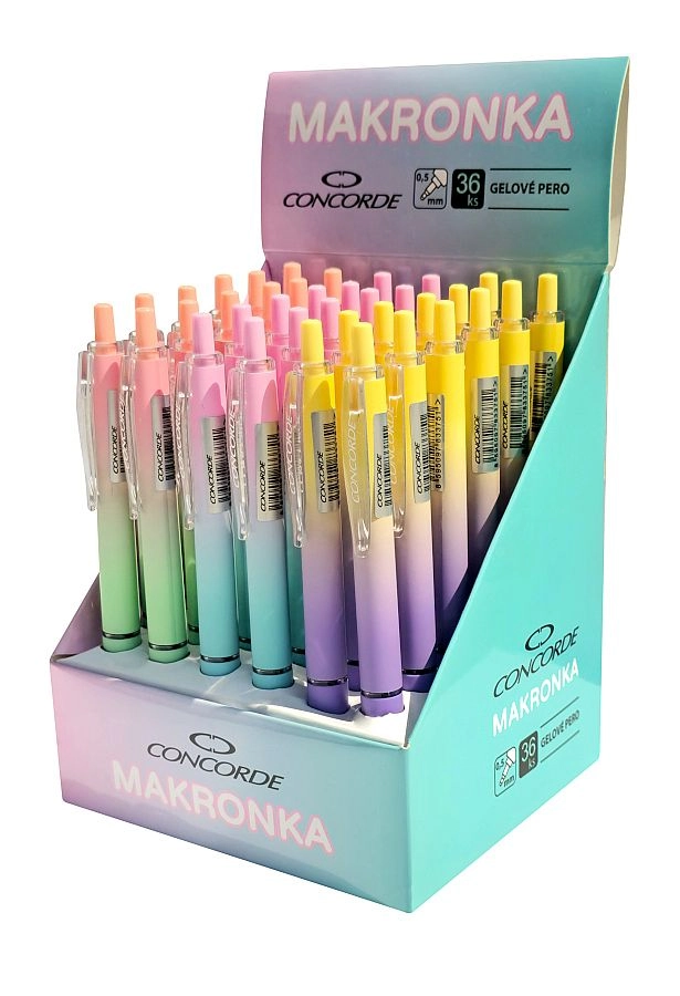 Objavte gélové pero Concorde Makronka, ktoré vyniká jemným a plynulým tokom atramentu a presným 0,5 mm hrotom pre čisté, tenké línie. Vďaka ergonomickému gumovému úchopu sa pohodlne drží aj pri dlhšom písaní a stláčací mechanizmus umožňuje rýchle vysunutie hrotu bez viečka.