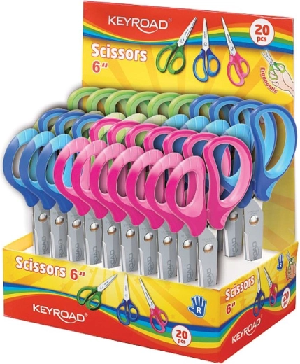 Praktické školské nožnice s guľatou špičkou a dĺžkou 15 cm na bezpečné a presné strihanie. Ponúkajú ergonomickú a mäkkú rukoväť na pohodlné držanie a kvalitné oceľové čepele na hladký strih. Dodávané v mixe 3 farieb.