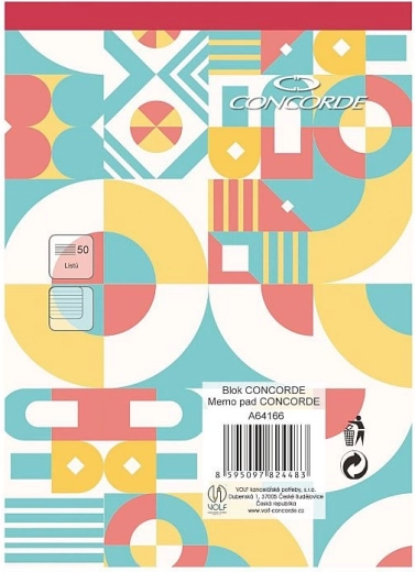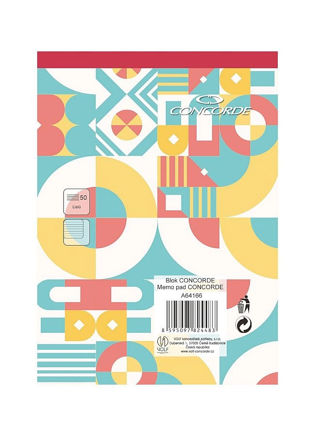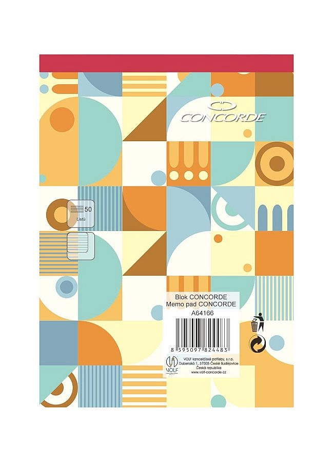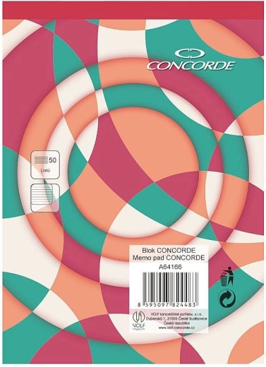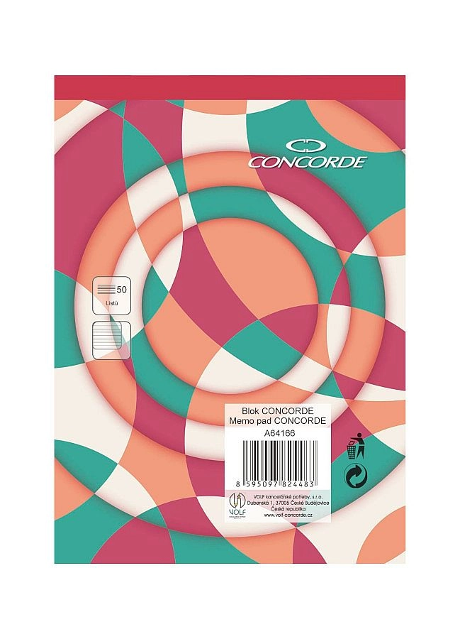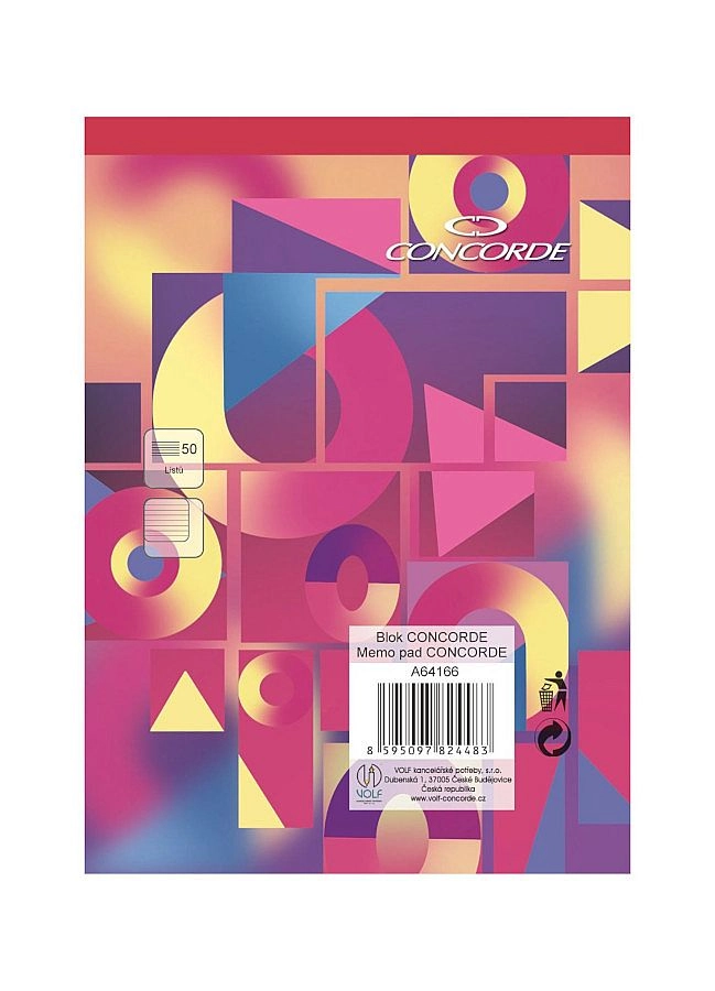 Kompaktný poznámkový blok CONCORDE vo formáte A6 je ideálny na cesty aj do kancelárie. Ponúka 50 listov bieleho bezdrevného papiera s gramážou 55 g/m² s linajkovaním 8 mm. Vďaka lepenému chrbtu a červenému chrbtu sa so zošitom ľahko manipuluje a hneď rozpoznáte, že ide o linajkovaný blok.