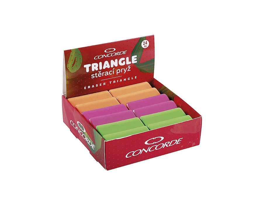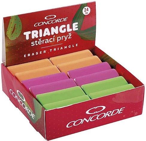 Trojhranná guma CONCORDE Triangle je navrhnutá na pohodlné a presné mazanie pri každodennom školskom aj kancelárskom použití. Vďaka ergonomickému trojhrannému tvaru sa ľahko drží a umožňuje kontrolované gumovanie bez zbytočného rozmazávania.