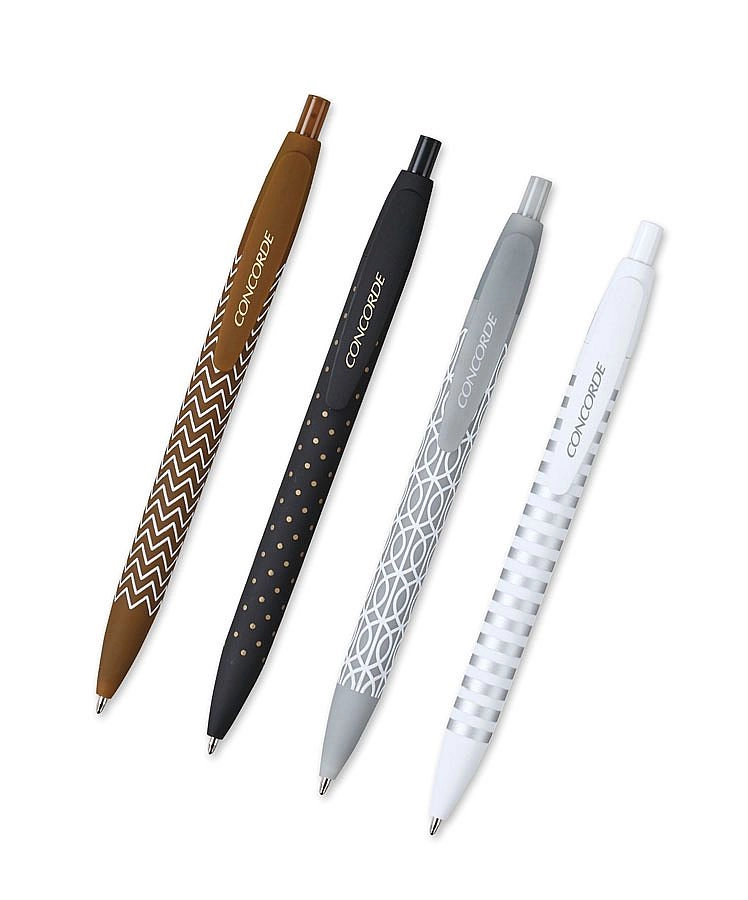 Hľadáte spoľahlivé pero na každodenné písanie do školy, kancelárie aj na cesty? Guľôčkové pero CONCORDE Milano vyniká ergonomickým tvarom a ľahko pogumovaným povrchom, ktorý zabezpečuje istý úchop bez kĺzania. Hrot so šírkou 0,7 mm poskytuje čistú, plynulú linku bez prerušovania.