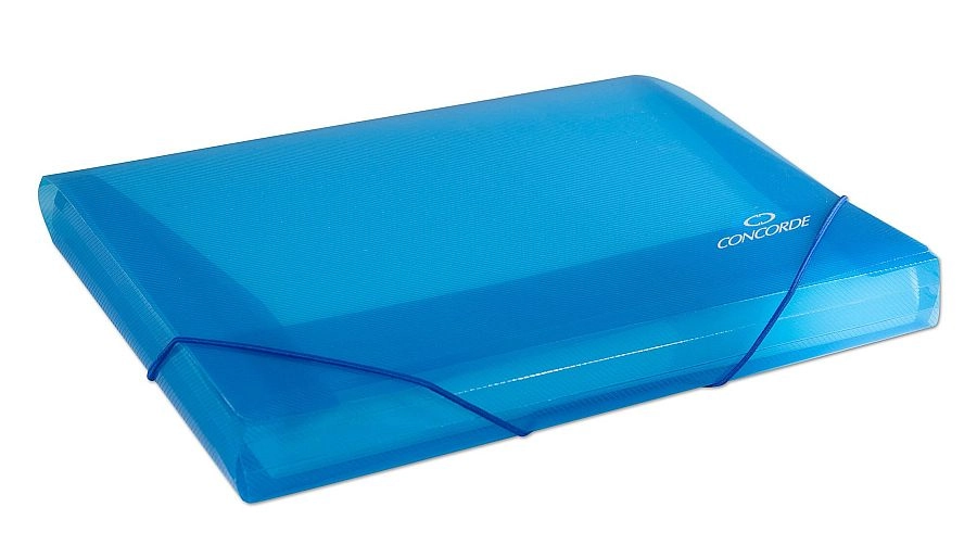 Praktické a odolné spisové dosky s gumičkou A4 v priehľadnej modrej farbe na bezpečné uloženie dokumentov. 3 chlopne chránia obsah pred vypadnutím, vystužený mriežkovaný materiál 450 mikrónov zaručuje dlhú životnosť a po zalomení chlopní možno dosky upraviť na spisový box až do výšky 3,5 cm.