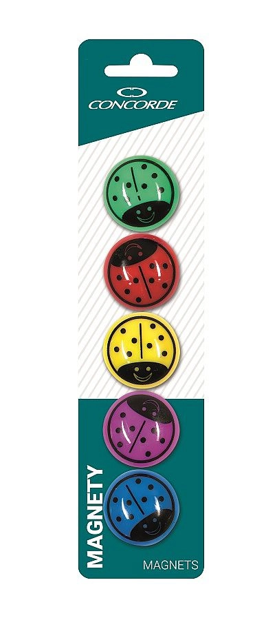 Dodajte svojim dokumentom a odkazom hravý vzhľad s magnetkami v tvare roztomilých lienok. Väčší priemer 35 mm zaisťuje pohodlnú manipuláciu a isté prichytenie na kovových povrchoch, ako sú tabule, chladničky či magnetické lišty.
