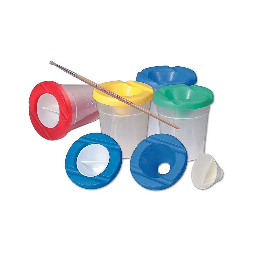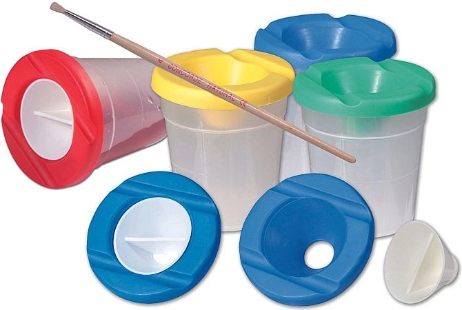 Praktický kalíšok na vodu CONCORDE s výškou 9 cm je ideálny pomocník na maľovanie a výtvarné práce. Vďaka šikovnému viečku s ryskou proti rozliatiu voda pri prevrhnutí nevytečie. Ponúka dve odkladacie žliabky na štetce, je vyrobený z odolného a pružného materiálu a dodáva sa v štyroch farebných variantoch.