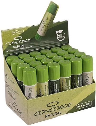 Objavte spoľahlivé a šetrné lepenie s lepiacou tyčinkou Concorde Natural. Vďaka prírodnému zloženiu z 90 % kukuričného škrobu zaistí čisté, rýchle a rovnomerné nanášanie bez zápachu. Praktická veľkosť 8 g je perfektná na každodenné použitie.