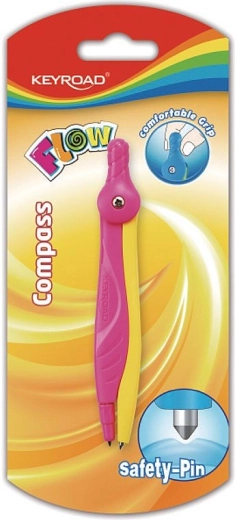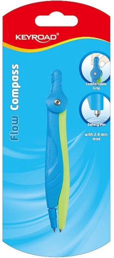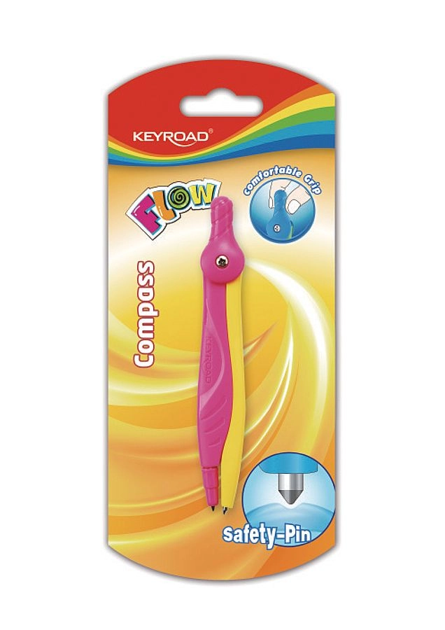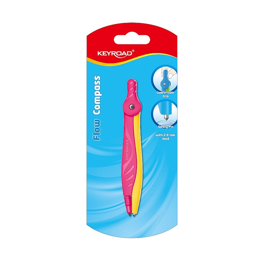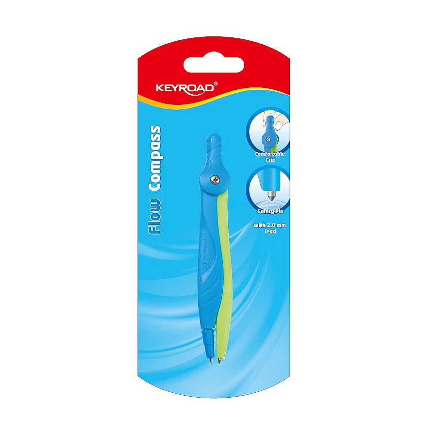 Praktické školské kružidlo KEYROAD Flow na presné kružnice a oblúky. Ponúka pohodlný ergonomický úchop, bezpečnostný hrot pre bezpečnejšie používanie a atraktívne dvojfarebné prevedenie. Dodávané na blistri v asortimente dvoch farieb.
