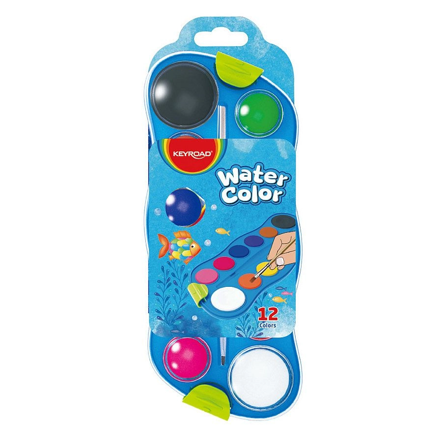 Táto sada vodových farieb KEYROAD je navrhnutá pre pohodlné a zábavné maľovanie. Praktická maľárska paleta uľahčuje miešanie odtieňov a udržiava pracovnú plochu prehľadnú. Vysoká pigmentácia zaistí intenzívne farby, ktoré na papieri krásne vyniknú.
